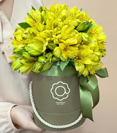 Jade – Arranjo Box de Astromelias Amarelas