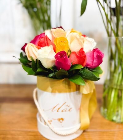 Uma encantadora e colorida box de rosas, especialmente para homenagear as lindas mamães, com certeza será um presente memorável a ser guardado.