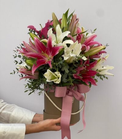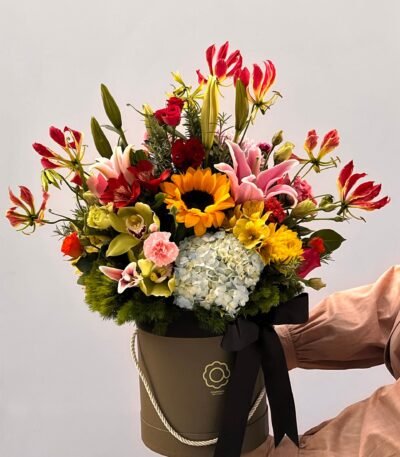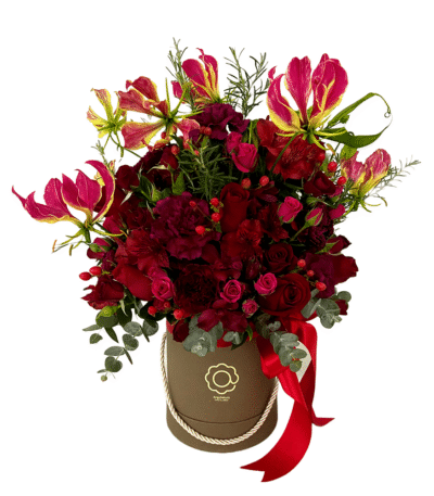 Em tons de vermelho, pink e bordô, o arranjo "Murasaki" ressalta a delicadeza do Mix de Flores Nobres.