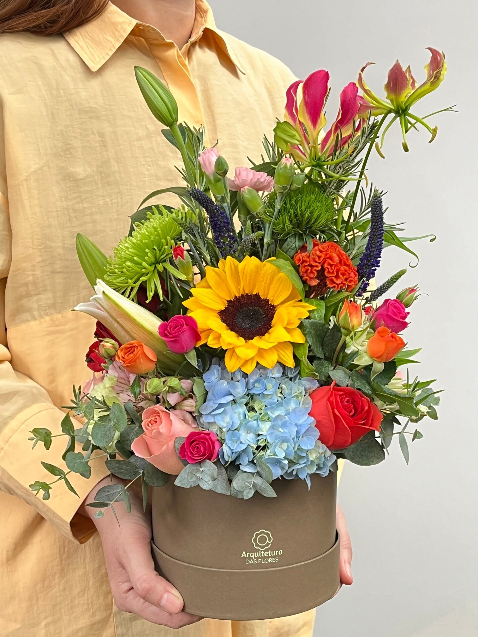 Desperte os sentidos e ilumine o dia de alguém especial com o nosso deslumbrante Box Flower Covent Garden – uma celebração das cores e formas da natureza em um arranjo exuberante. Com uma variedade de flores coloridas cuidadosamente selecionadas, cada pétala e folha contam uma história única de beleza e vitalidade.