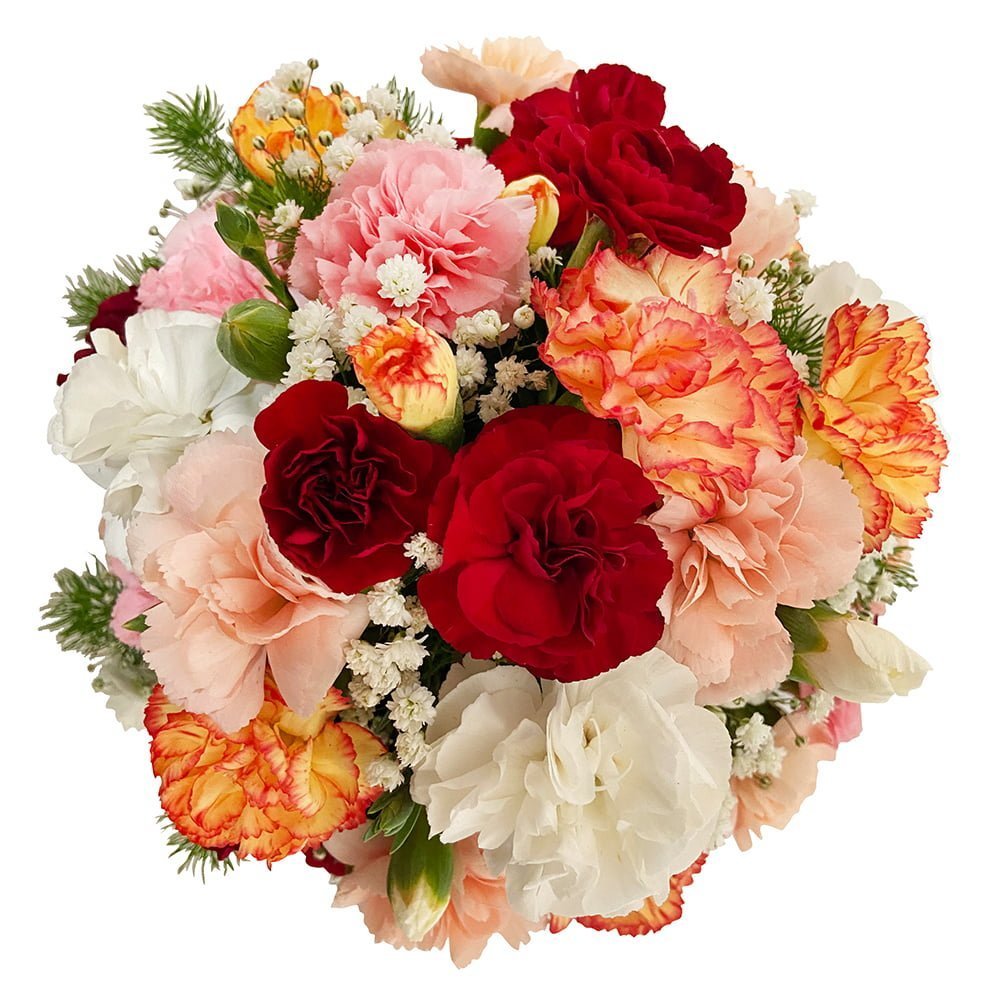 Elegante box exclusiva da Arquitetura das Flores com Cravos coloridos, o presente ideal para comemorar conquistas com pessoas que amamos.
