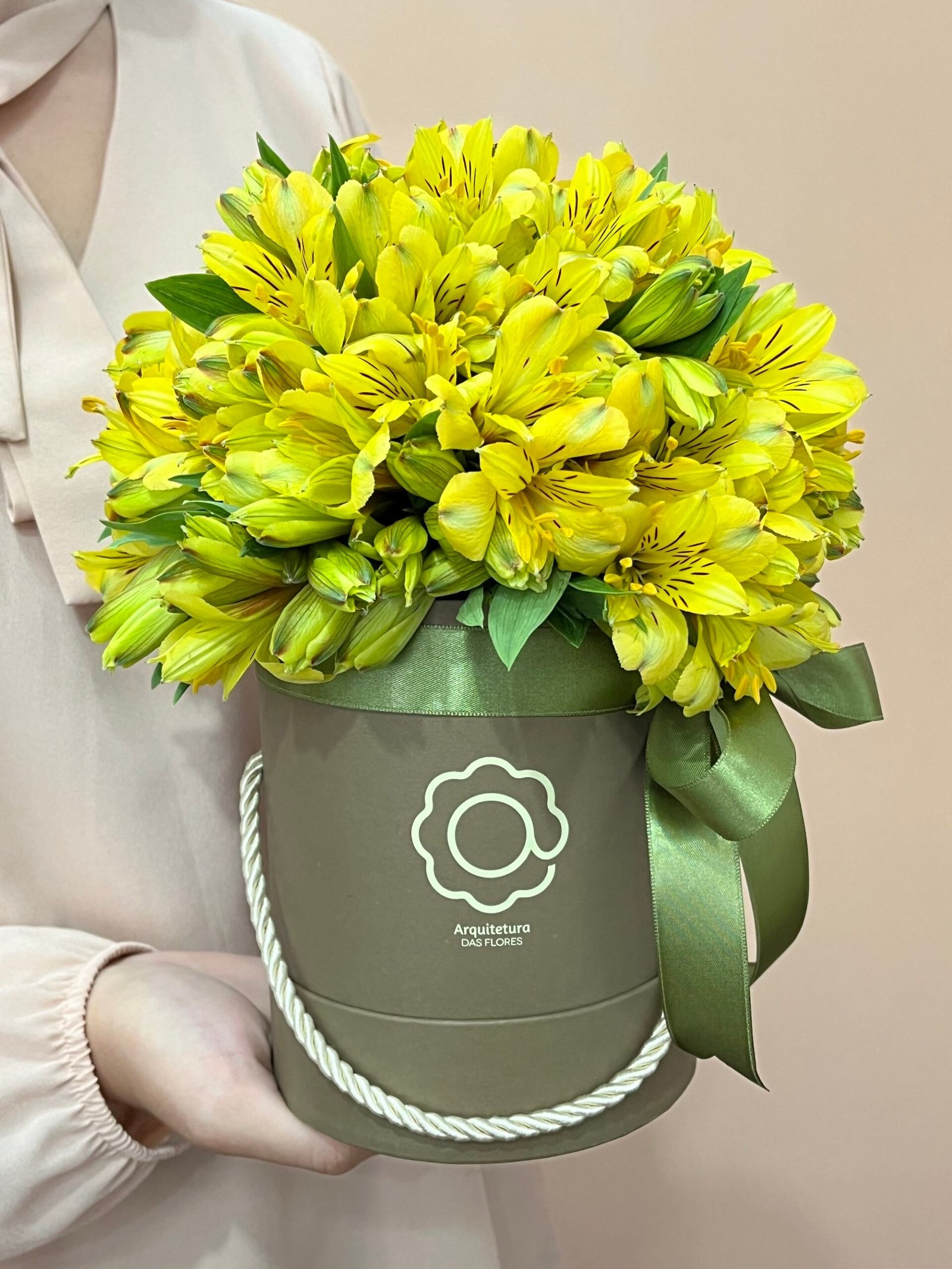 Jade – Arranjo Box de Astromelias Amarelas