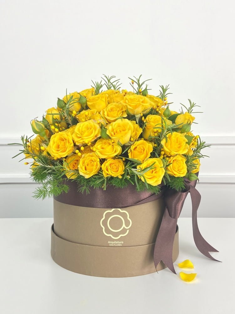 Box de Mini Rosas Amarelas, símbolo de alegria e boas energias, que proporciona uma experiência marcante a quem recebe.