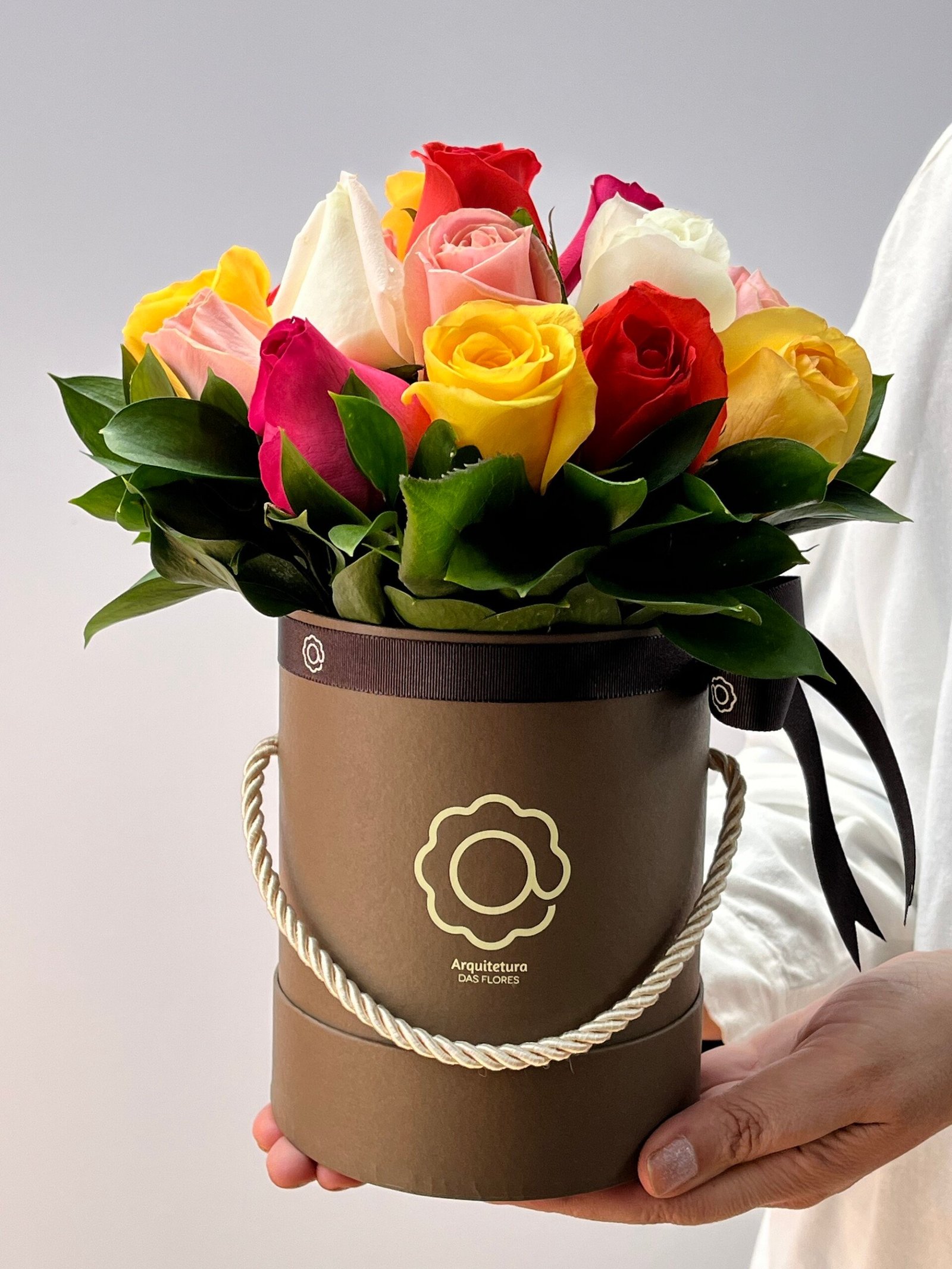 Mix de Rosas coloridas em box exclusiva, trazendo todo o frescor e alegria das flores. Perfeito para presentear em datas especiais ou decorar o ambiente.