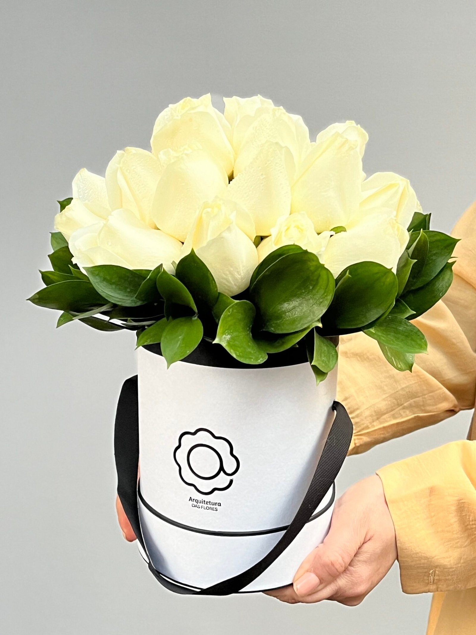 Delicado e elegante, o arranjo White Roses transmite os sentimentos de pureza e leveza através da beleza das Rosas brancas em box exclusiva da Arquitetura das Flores.